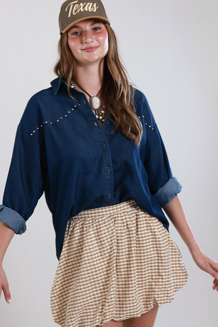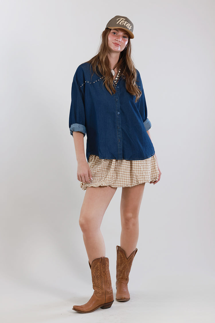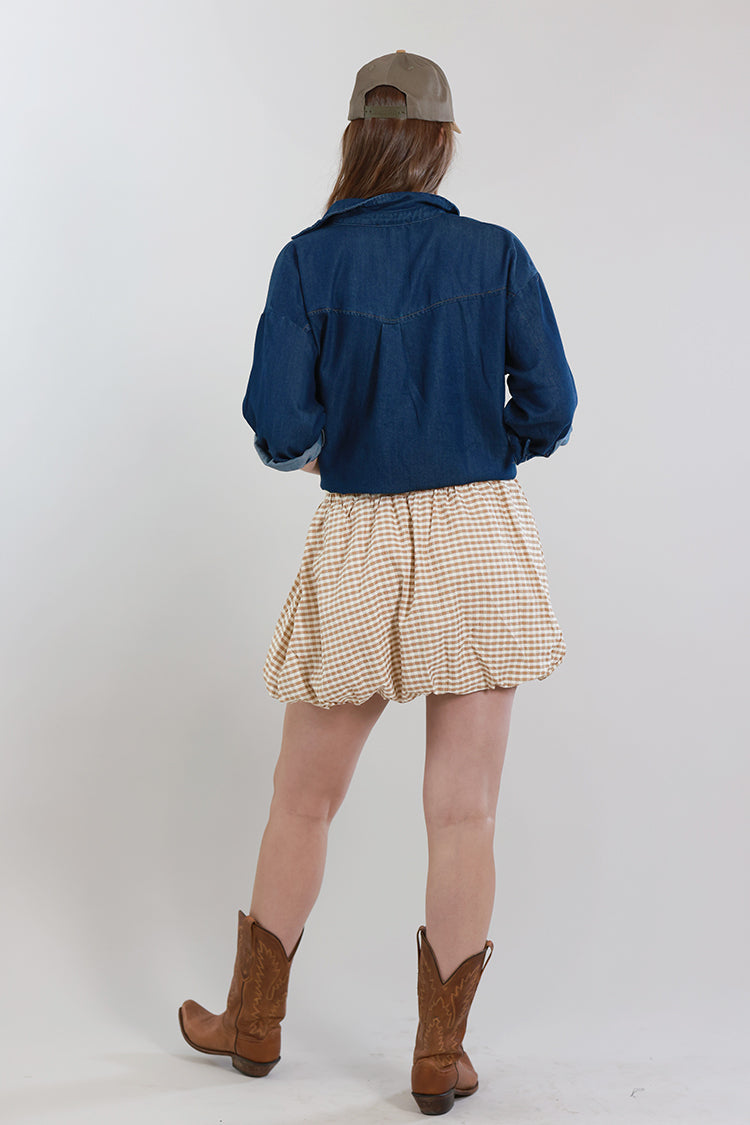 Playful and full of personality, this gingham bubble skirt brings a fresh, flirty feel to your everyday lineup. Designed with a voluminous silhouette and soft elastic waistband, it creates that signature bubble shape while keeping things comfortable and easy to wear. The classic gingham print adds a touch of charm while still feeling current and versatile. Style it up with a belt and boots or keep it casual with an easy top and sneakers.