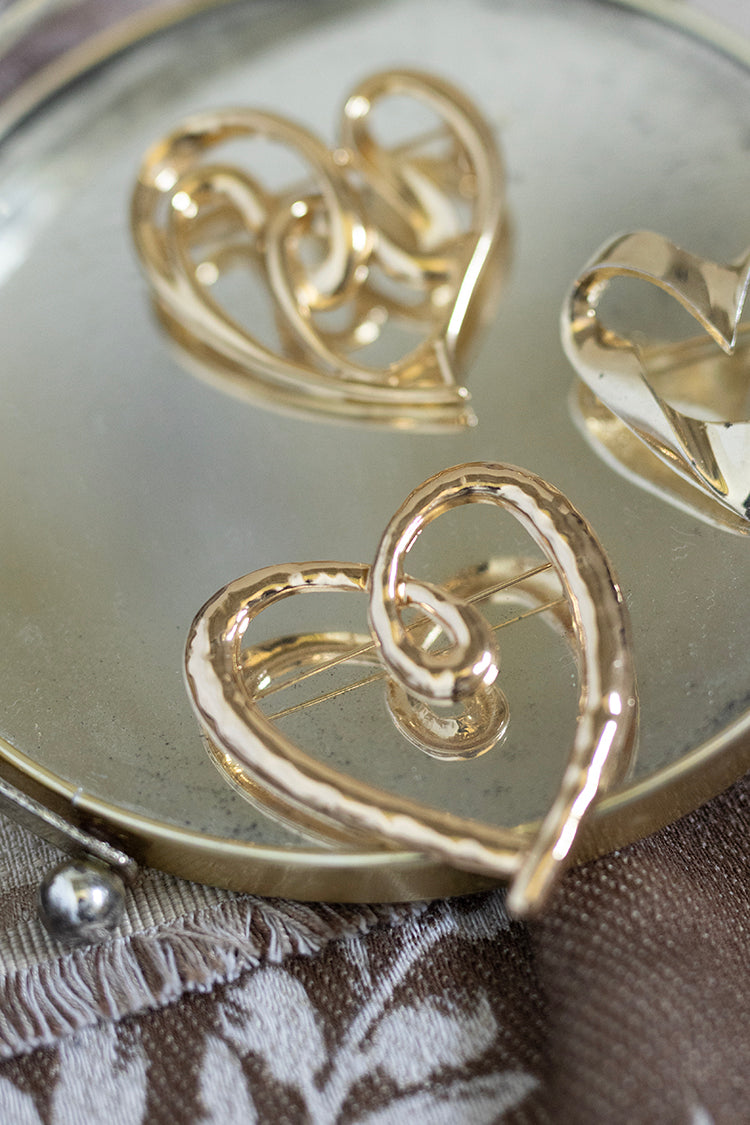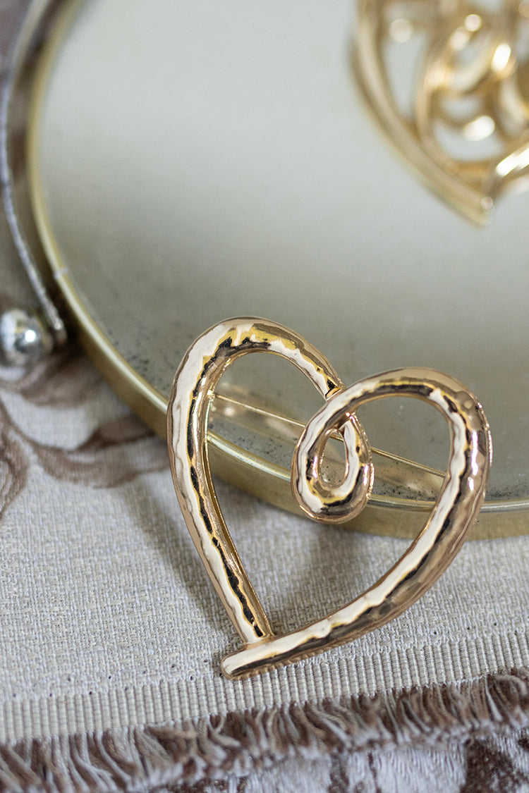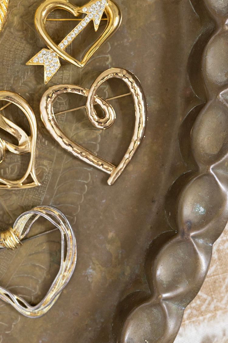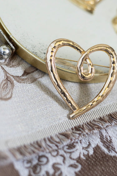 Softly hammered metal gives this vintage open heart brooch its warm, organic character. The gently irregular surface reflects light beautifully, adding depth to the simple, flowing silhouette. Elegant yet unfussy, the open design makes it an easy piece to wear with both casual and dressed-up outfits.